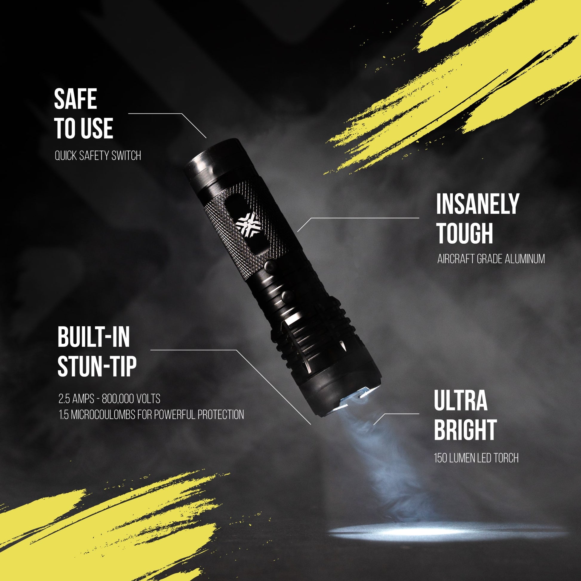 The Mini Shockwave Torch is incredibly easy-to-use, just unlock the safety and press the second button to disable attackers. And press the first button to blast the blinding 150 lumen flashlight that’s built right in. It also requires no background check or hassles to own and carry!